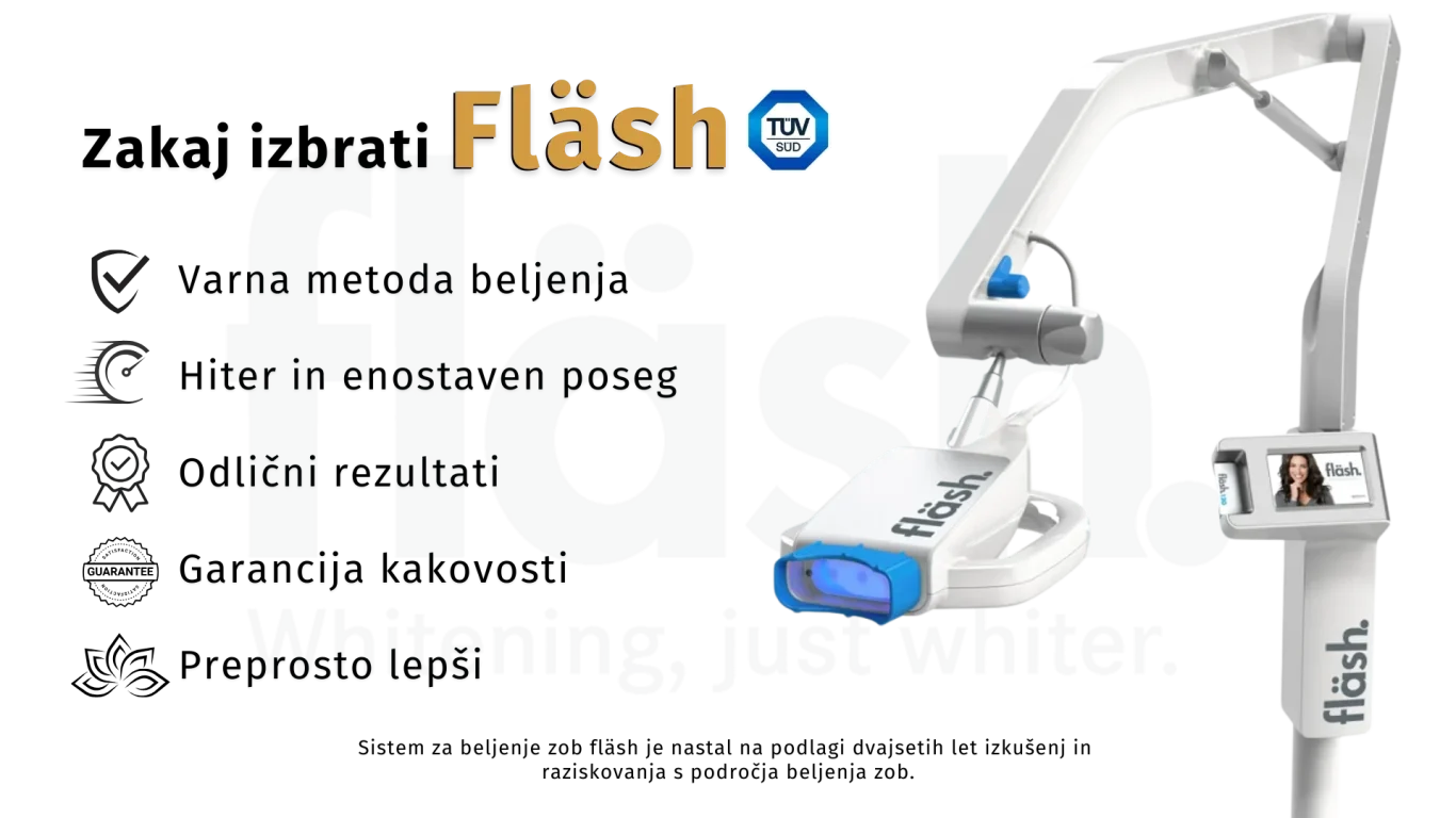 Ta napredna metoda uporablja močno LED luč (aparat Flash), ki aktivira poseben gel in varna belilna sredstva, kar omogoča doseganje izjemnih rezultatov in opazno posvetlitev vašega nasmeha že v enem samem obisku.